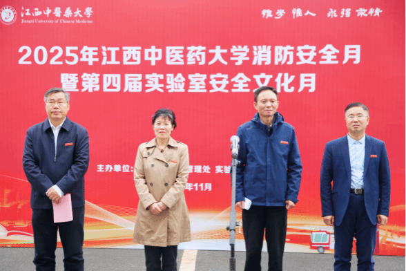 开幕式上,朱卫丰宣布江西中医药大学2025年消防安全月暨第四届实验室安全文化月开幕。朱根华致开幕辞,要求各部门树牢“生命至上”底线思维,吃透实验室规范操作核心要求,强化“全员参与”责任自觉,将消防理念与中医“治未病”智慧深度融合,以思想之弦绷紧安全之责,以务实之举筑牢安全之基,以文化之力守护校园平安,为学校高质量发展保驾护航。周志刚介绍了2025年消防安全月暨第四届实验室安全文化月的整体活动安排。
