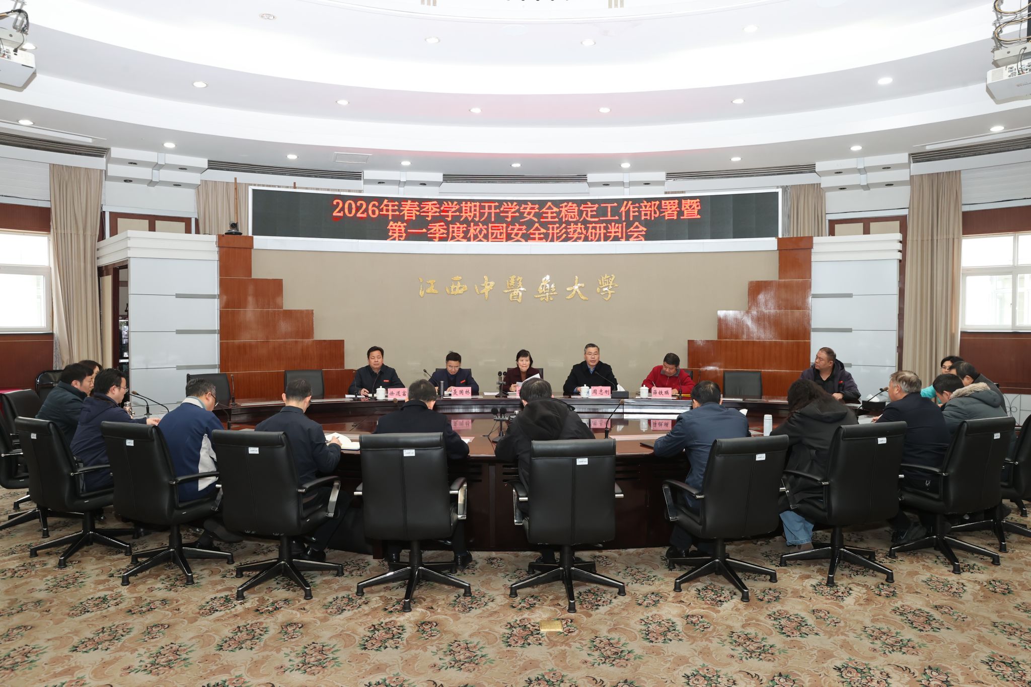 江中新闻网讯(通讯员 高贵森 记者 余浩)3月4日下午,学校在行政楼多功能会议室召开2026年春季学期开学安全稳定工作部署暨第一季度校园安全形势研判会,学校党委副书记、校长朱卫丰出席会议并讲话,党委委员、副校长周志刚主持会议,党委委员聂国林、薛铁瑛、徐道富出席会议,各相关职能部门及教学院部负责人参加会议。