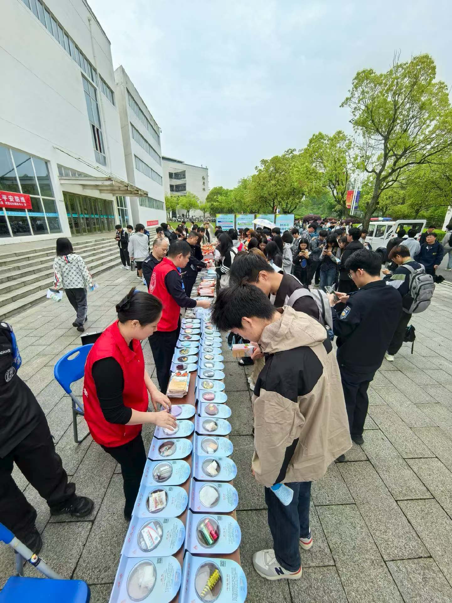 禁毒主题宣讲区,湾里公安分局民警与626服务中心工作人员结合仿真毒品模型,详细讲解传统毒品、新型毒品的种类及危害,重点介绍了伪装毒品的识别技巧。现场还设置禁毒宣传展板,展示禁毒工作成效,让师生直观感受到毒品对个人、家庭和社会的严重危害。
